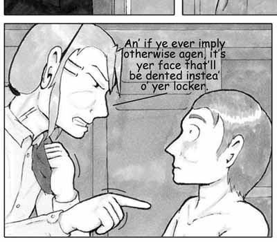 Author's Note: Yay, fun with accents! It's really unbelieveable how much research is needed to convey an accent well -- you'd think it would just be a question of spelling changes and such, but there's also diction, pacing, and a host of other things to factor in. That and making sure that the final product is still readable when you're done...