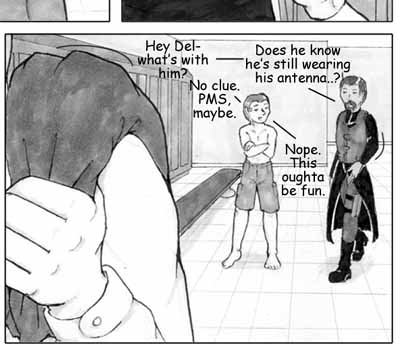 Y'know, Del really, really needs to learn when to keep his mouth shut, but I truly doubt he ever will. I think that's what makes him so fun to write for... he knows he shouldn't do something, but just can't help it. It's been a while since he's been a jerk, so I figured he should have a chance. :D |