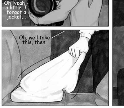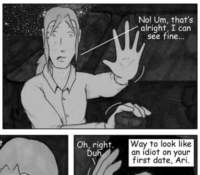 Author's Note: At first, I wasn't going to make Ewan's eyes noticeably different -- but I got to thinking about the way night vision / low-light systems work, and it seemed more fitting for them (the eyes) to be just a little reflective, kind of like a cat's, to process more of the available light. Plus, it looked a lot cooler. :D |