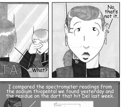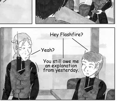Author's Note: It seems like each character has their own signature expression. For Del, it's the cheesy grin, as you can see from the first panel this week. Flashfire's seems to be the raised-eyebrow "WTF?" look (o.0) -- it came out exactly right in the second panel here. Kind of a shame that it's so small.