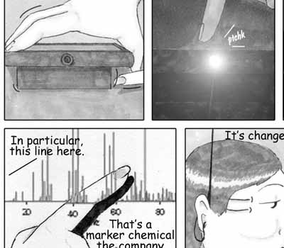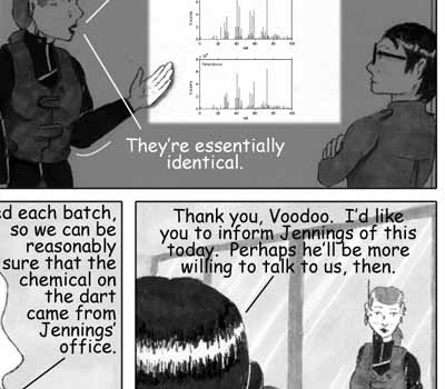Oh, and those are actual gas chromatograph-mass spectrometer graphs in the middle panels, just in case you were wondering. :)
