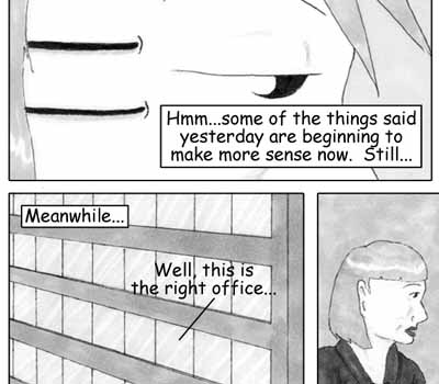 Author's Note: The one thing I dislike about revisiting previous locales or bringing back minor characters from earlier in the comic is that it forces me to look back through my old artwork (my memory isn't perfect, especially when it comes to details on buildings and such). I hate doing that, but I suppose it's necessary every once and a while -- if only to see how much improvement I've made. I think I've gotten quite a bit better since I started this. Right? RIGHT? ;)