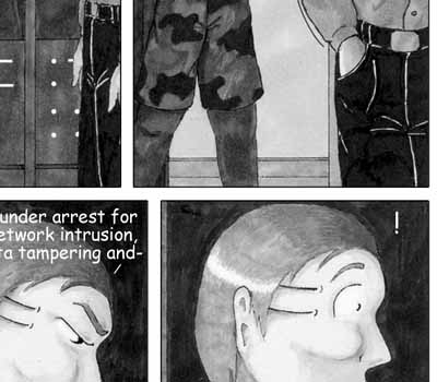 Author's Note: I know that the first half of this page is entirely unrealistic, but I can't pass up the opportunity for the cheap laugh. After all, webcomics are all about entertainment, right? I mean, I'm probably one of the most story-realism anal of webcomic creators, but when given the choice between a boring, realistic execution of a scene and an unrealistic, fun way, I'll go for fun every time. Just seems like the right thing to do.