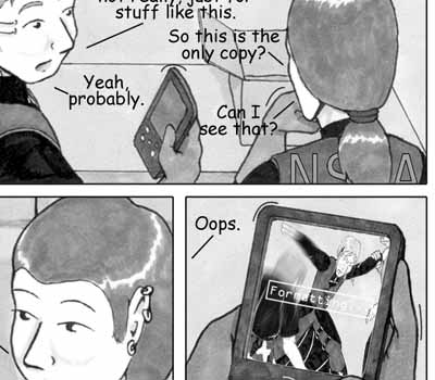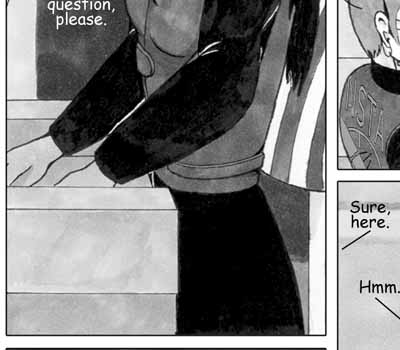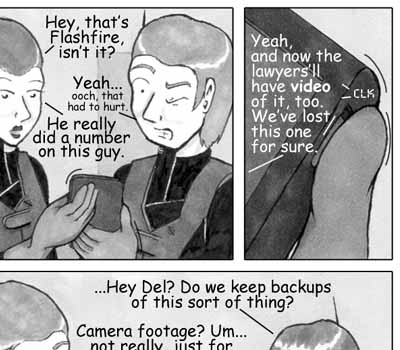 Author's Note: Del has the best expressions, doesn't he? He can be so fun to draw. :) I had a lot of fun laying out and drawing this page -- I like the juxtapostion of the scenes.