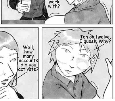Author's Note: Some more interogation. It's getting tough to find interesting panel layouts - there are only so many ways you can draw two people talking across a table. :/ Oh well, the scene's nearly over anyhow...