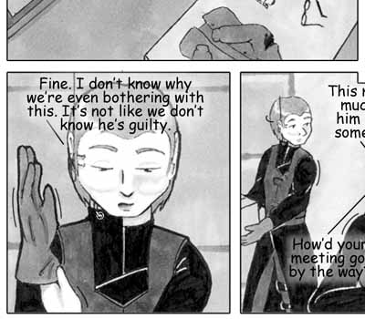 Author's Note: Suprise! Scene change! Don't worry, I'll go back to the interegation scene soon. We just have to see how everyone else is doing first. :)