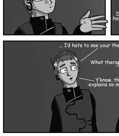 Author's Note: This week we have a guest comic that was graciously provided by Nate from Jazz and Jess, which I urge everyone to go and check out, provided they like kick arse artwork and zombie-killing awesomeness. (But who doesn't?) He has a great attention to detail and is a wonderful artist (though Flash looks maybe just a leetle more psycho than I was expecting...). I really appreciate his willingness to give me a hand like this, so the least I can do is point you over to his comic. You will not be disappointed. :) |